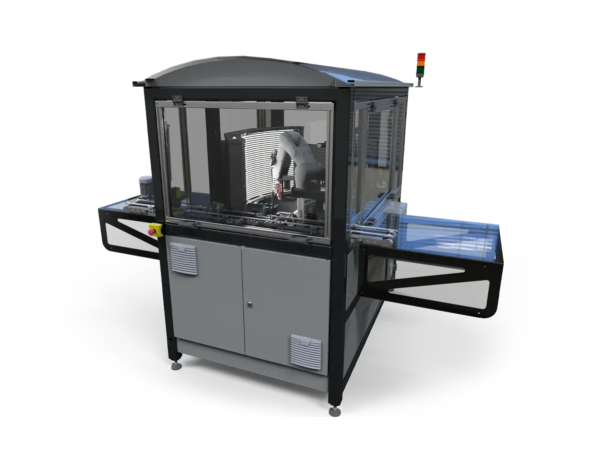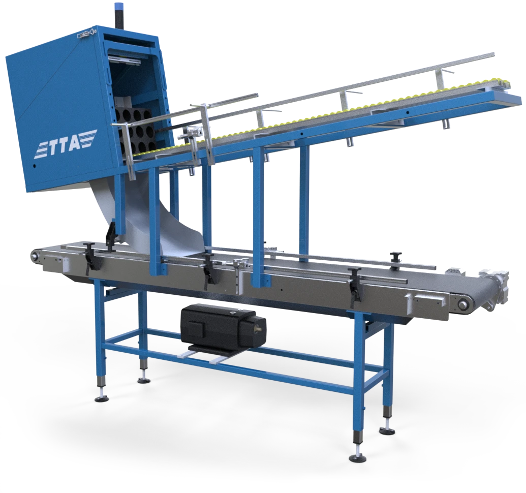 Eine kompakte Maschine für die schnelle und präzise Entstapelung von Töpfen.