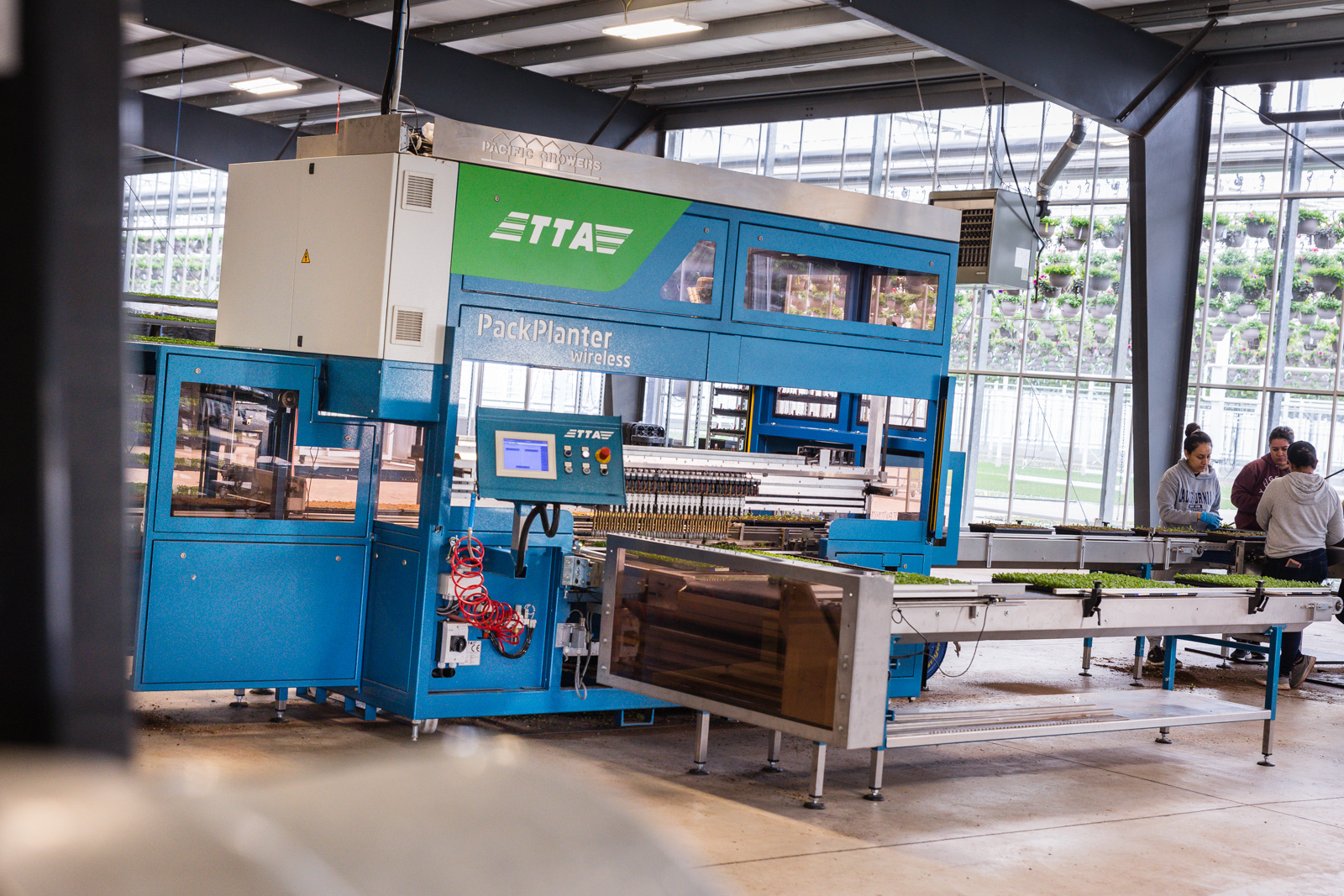 Mit dem PackPlanter kann in trays, packs oder Töpfe in trays verpflanzt werden. Diese Maschine eignet sich besonders für Gärtnereien, die maximale Geschwindigkeit und Flexibilität wünschen.