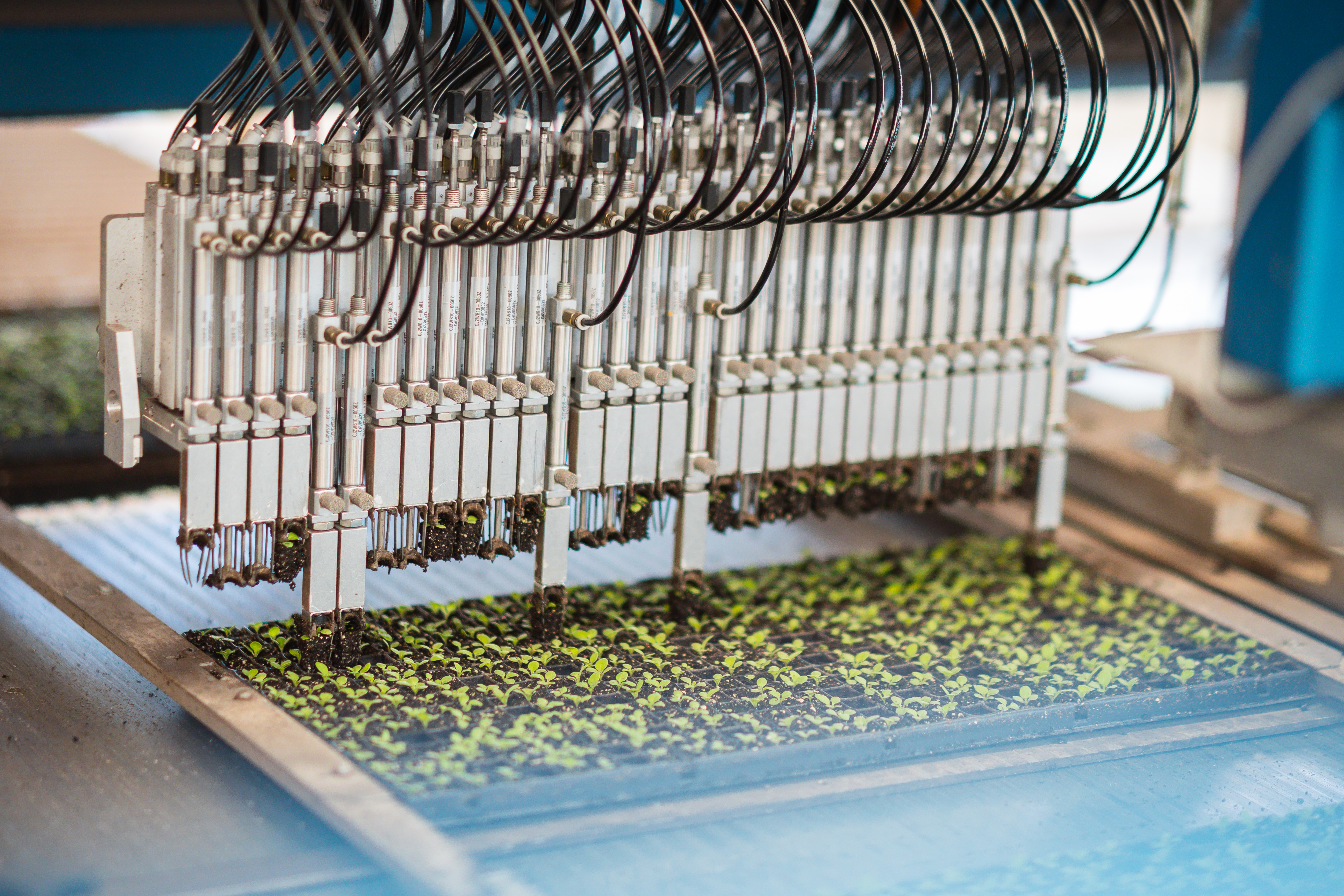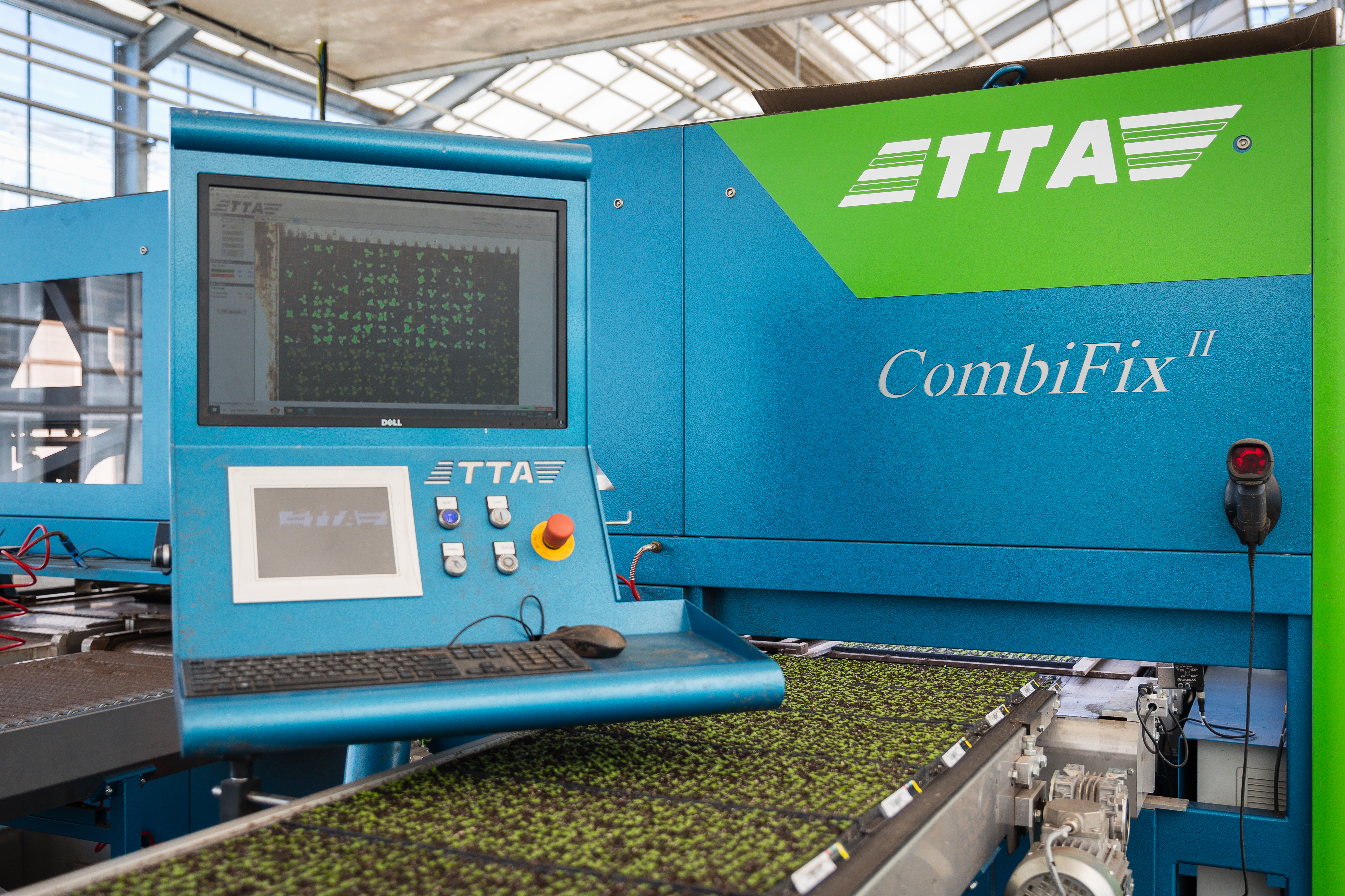 Mit dem Pusherpin-System des TTA-ISO können selbst empfindliche Pflanzen mit unvollständigem Wurzelsystem fast ohne Beschädigung des Wurzelstopfens gehandhabt werden. Der Vorteil von trays ist die optimale Nutzung des verfügbaren Raums, die Einheitlichkeit des Pflanzenmaterials und der Pflanzenentwicklung sowie die Prozessoptimierung beim automatischen Umpflanzen.