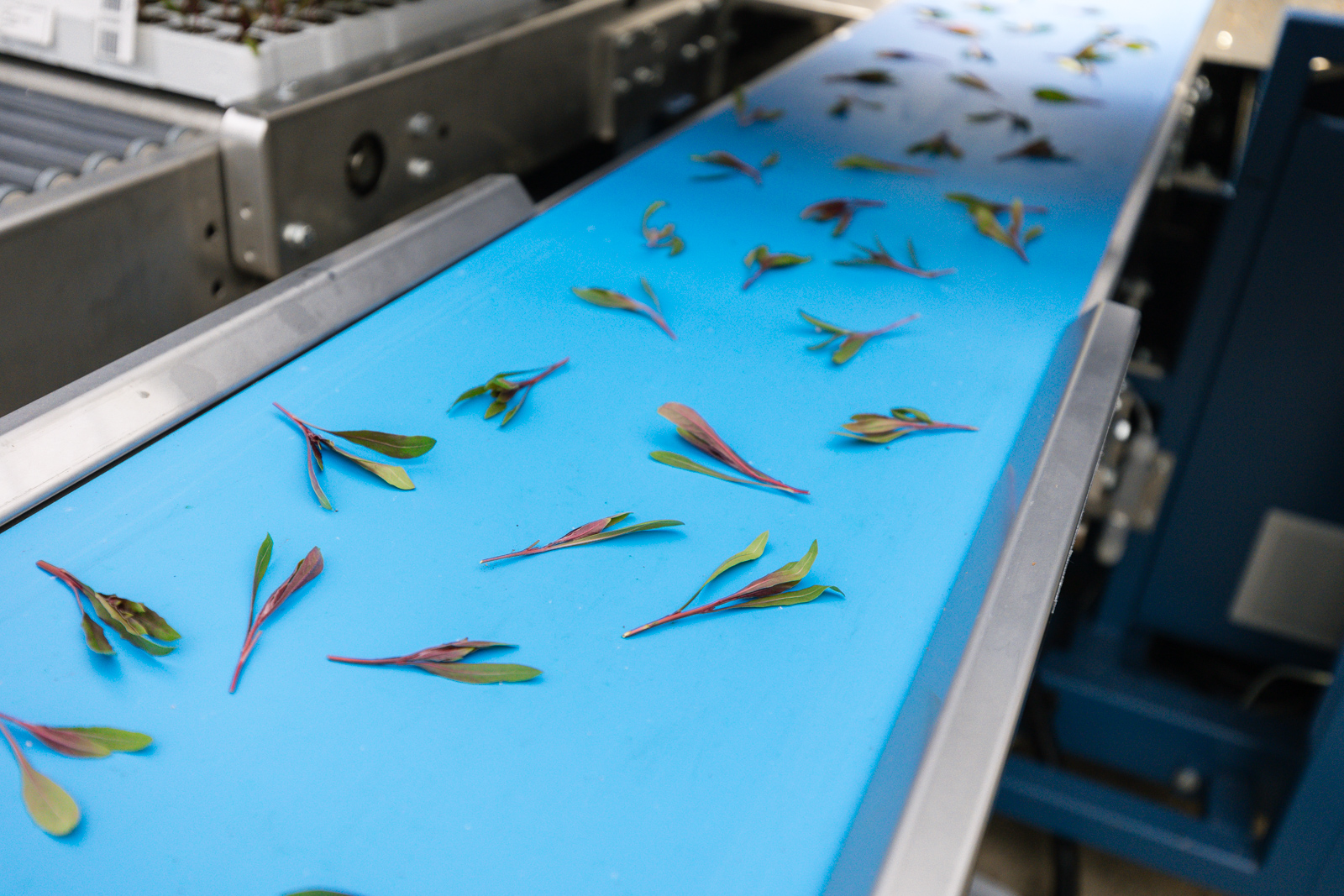 trays werden entweder manuell oder automatisch auf den Zufuhrkettenförderer gesetzt. Der Kettenförderer positioniert die trays dann präzise an ihrem Bestimmungsort. Das Schnittgut kann manuell auf dem Aufnahmeband oder automatisch mit VisionAir getrennt werden. VisionAir nutzt fortschrittliche Bildverarbeitungstechnologie und Luftdüsen, um sicherzustellen, dass nur perfekt getrenntes Schnittgut an die CuttingEdge geliefert wird.