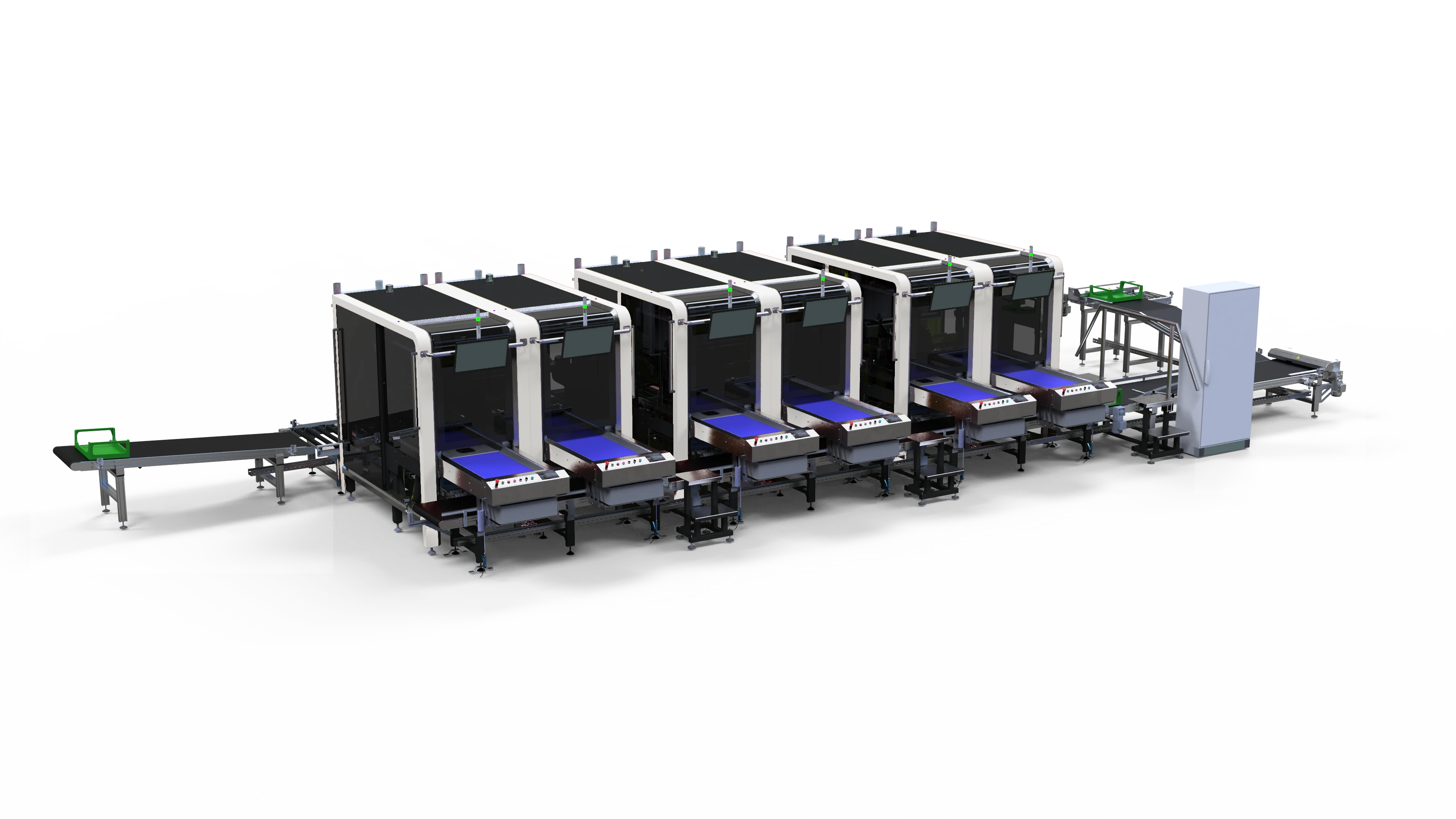 Es ist möglich, mehrere CuttingEdges hintereinander zu schalten, um die Kapazität zu erhöhen. Die maximale Anzahl der Maschinen, die angeschlossen werden können, hängt von der Art der Zuschnitte und der trays ab.