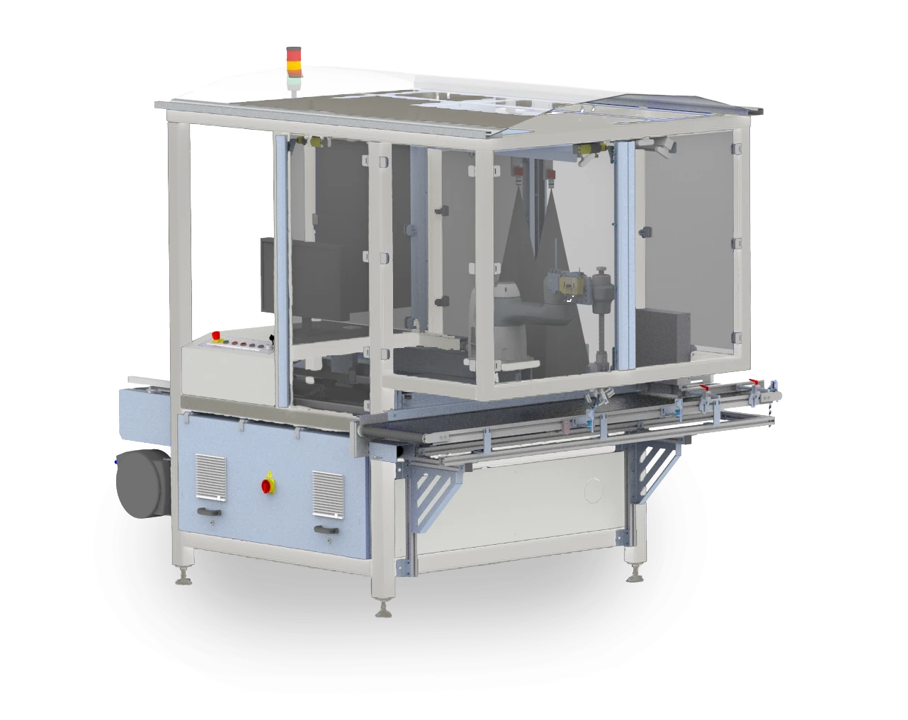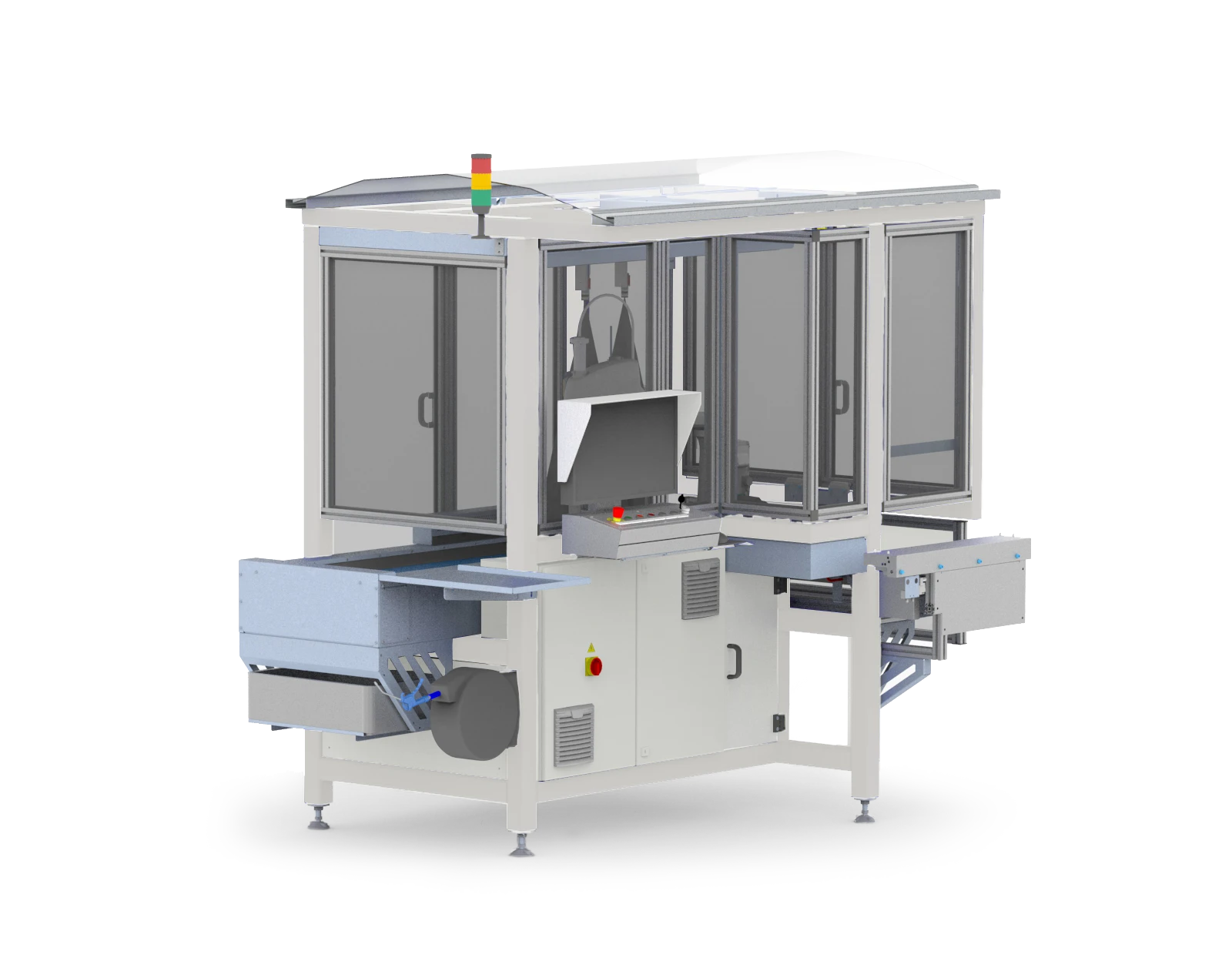 trays werden entweder manuell oder automatisch auf den Zufuhrkettenförderer gesetzt. Der Kettenförderer positioniert die trays dann präzise an ihrem Bestimmungsort. Das Schnittgut kann manuell auf dem Aufnahmeband oder automatisch mit VisionAir getrennt werden. VisionAir nutzt fortschrittliche Bildverarbeitungstechnologie und Luftdüsen, um sicherzustellen, dass nur perfekt getrenntes Schnittgut an die CuttingEdge geliefert wird.