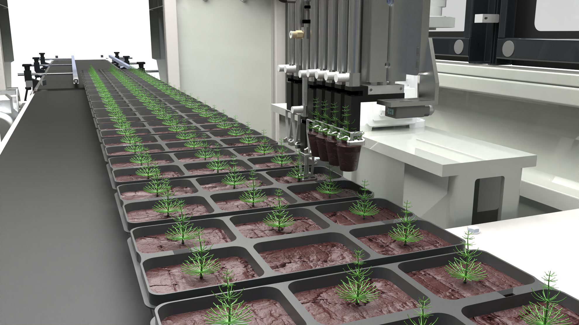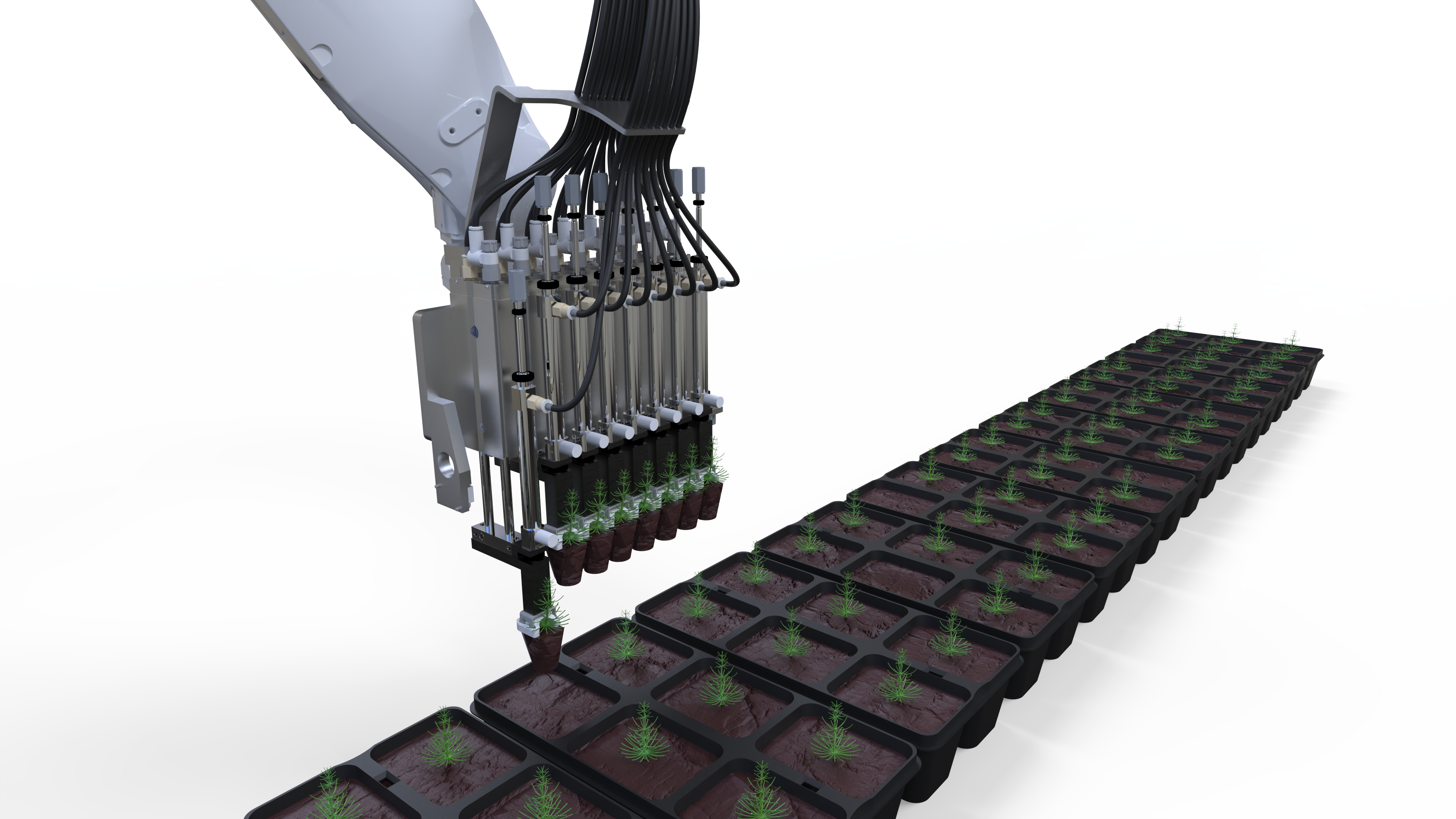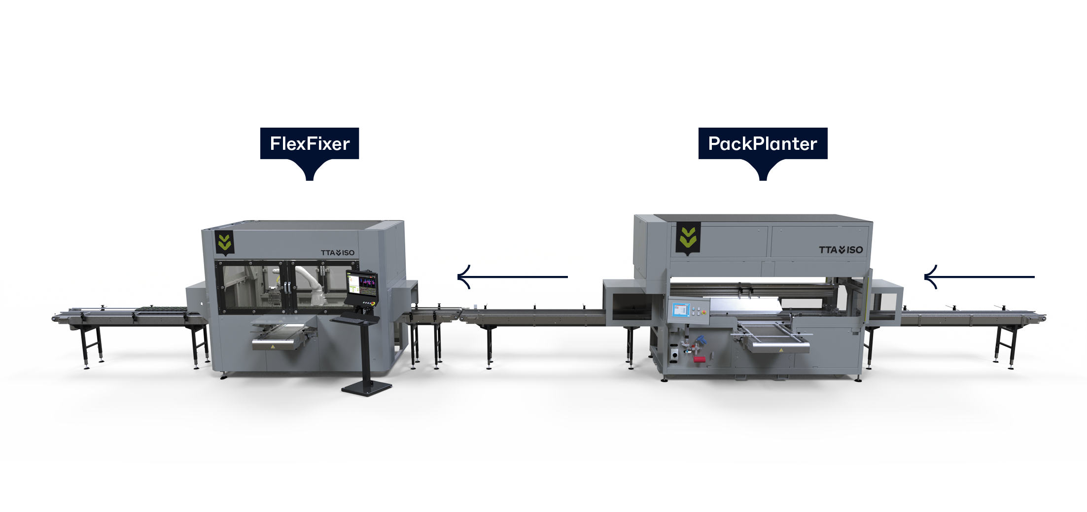 Der FlexFixer lässt sich einfach hinter einem PackPlanter oder PackPlanter S integrieren und hilft Ihnen, die Abhängigkeit von Arbeitskräften zu verringern, die Qualität des Umpflanzens zu verbessern und die Effizienz in Ihrem Baumschulbetrieb zu maximieren. Der FlexFixer kann auch als hochwertige Umpflanzmaschine eingesetzt werden, die eine Erfolgsquote von nahezu 100 % beim Umpflanzen erzielt.