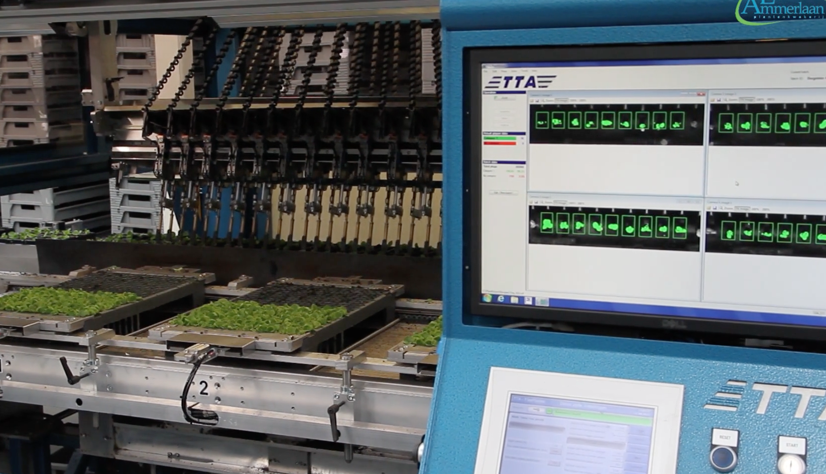 Ausrangierte Pflanzen und leere Stopfen werden auf einem Abfallband gesammelt. Das Zielfach ist wahlweise zu 100 % gefüllt (keine Korrektur erforderlich) oder zur Kapazitätserhöhung mit einigen Lücken, so dass der Bediener das Ergebnis korrigieren kann. Die Maschine und das Bildgebungssystem bieten eine leicht verständliche Benutzeroberfläche mit eingebauter Selbstdiagnose.