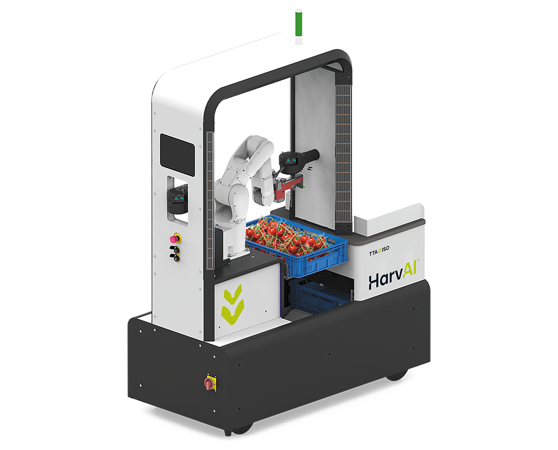 Nach jahrelanger Forschung, Entwicklung und strengen Feldtests stellt TTA-ISO stolz den HarvAI® vor: einen Ernteroboter der nächsten Generation, der gleichbleibend hochwertige Ergebnisse in großem Maßstab liefert. Dieser fortschrittliche Ernteroboter verfügt über eine präzise Reifeerkennung, eine intelligente Roboternavigation und ist mit der bestehenden Gewächshausinfrastruktur kompatibel.