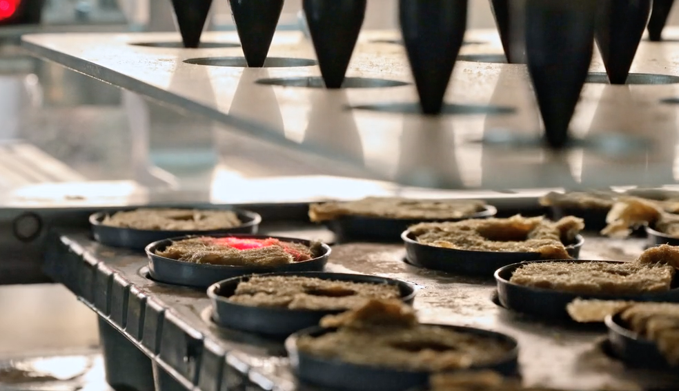 Sobald ein Tablett fertig ist, kann es manuell vom Tisch direkt auf das untere Förderband geschoben werden. Der Mitarbeiter kann ein neues Tablett nehmen, das in der Zwischenzeit auf der oberen Ebene positioniert wird, vorausgesetzt, es gibt genügend externe Zufuhr. Die bearbeiteten trays verlassen die Klebelinie. Die manual sticking line kann mit einer Erfassungssoftware ausgestattet werden, die es ermöglicht, die individuelle Produktivität zu überwachen.