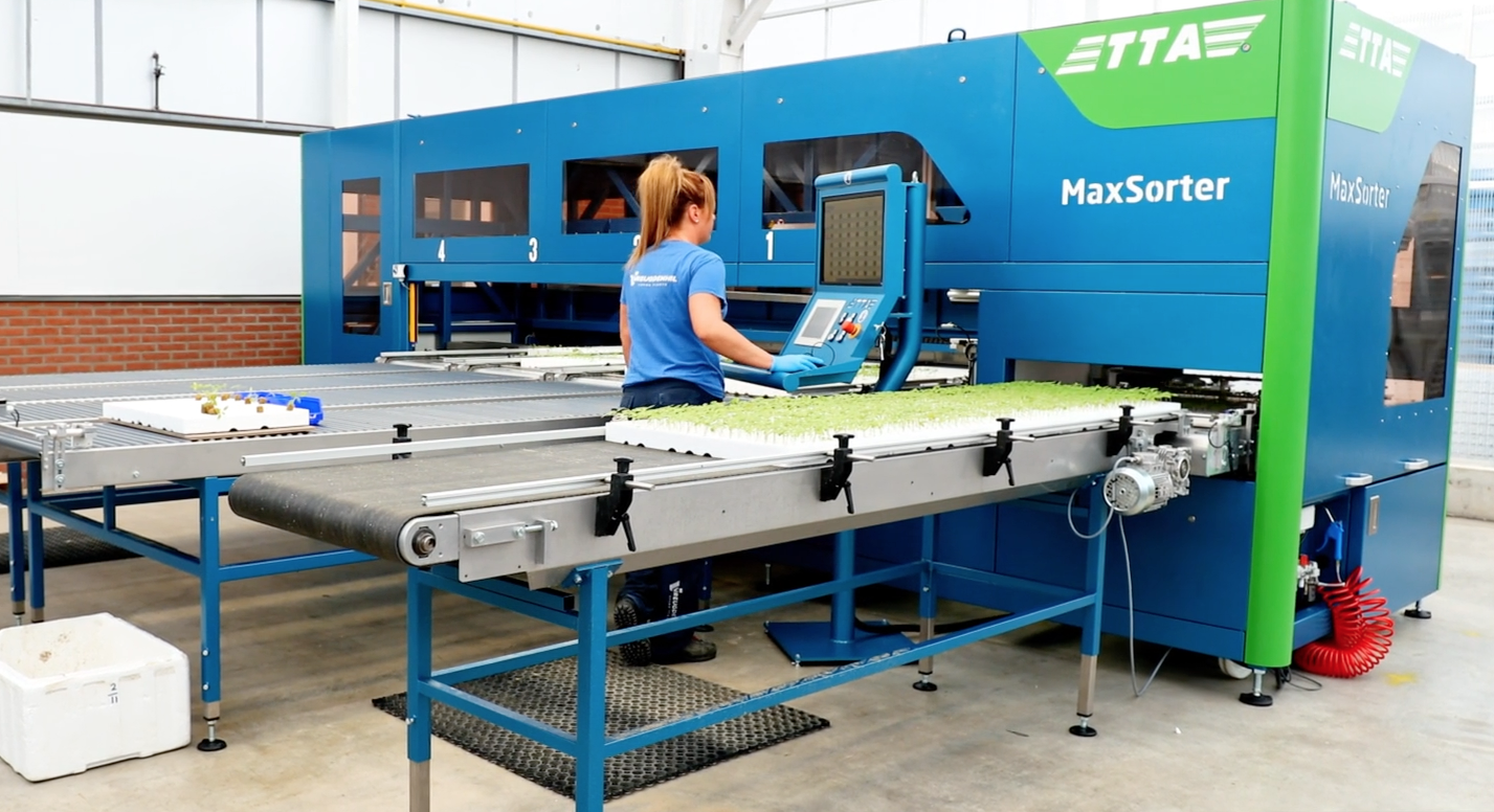 Der MaxSorter ist eine vollautomatische Lösung zum Verpflanzen und Sortieren von Jungpflanzen in bis zu vier Sorten.