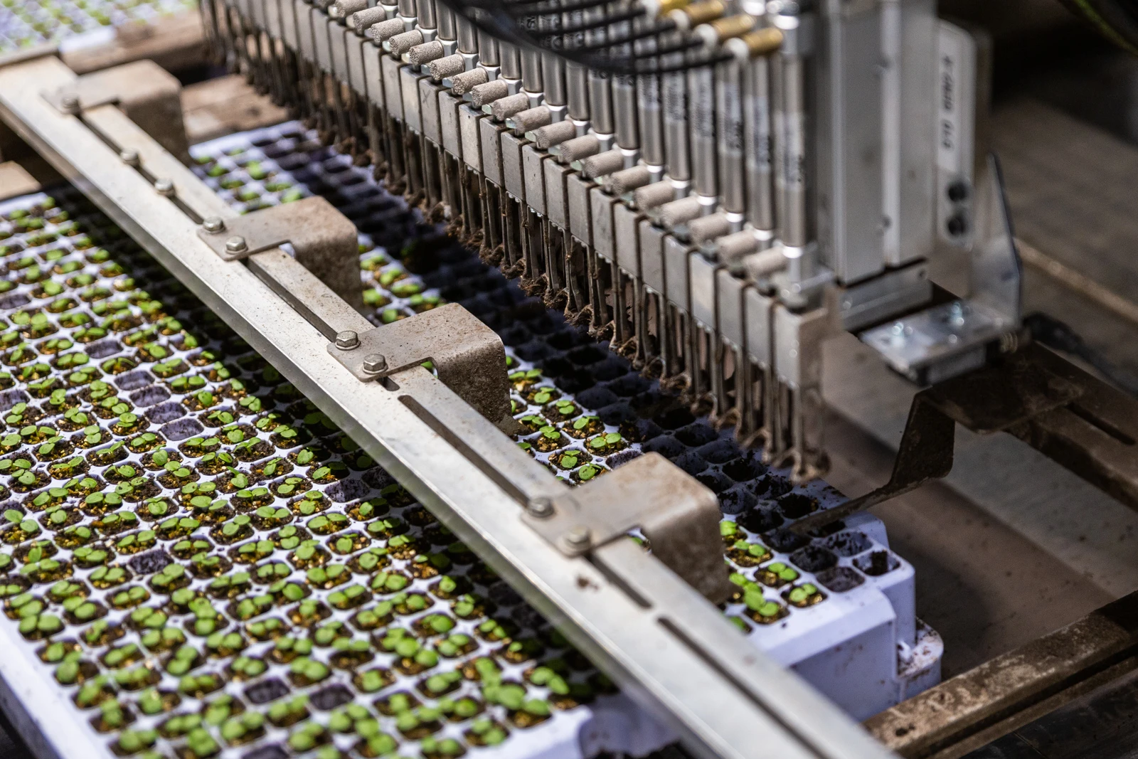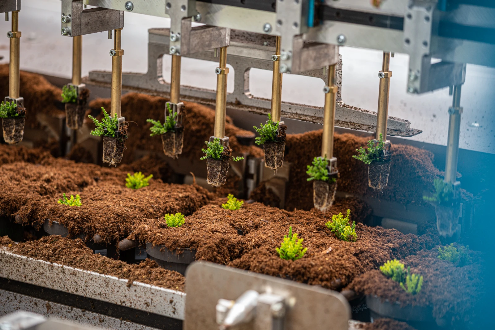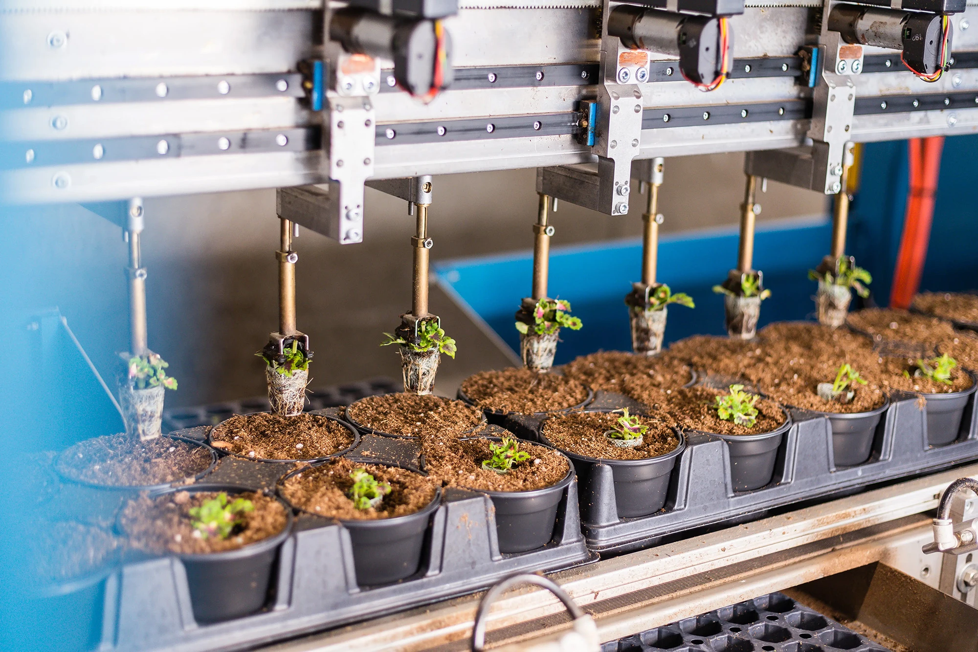 Deshalb entwickeln wir fortschrittliche Automatisierungslösungen, die auf die Zierpflanzenproduktion zugeschnitten sind. Vom Umpflanzen von Stecklingen bis zum Sortieren von Jungpflanzen automatisiert unsere bildverarbeitungsgesteuerte Robotik arbeitsintensive Aufgaben mit außergewöhnlicher Präzision und Zuverlässigkeit.